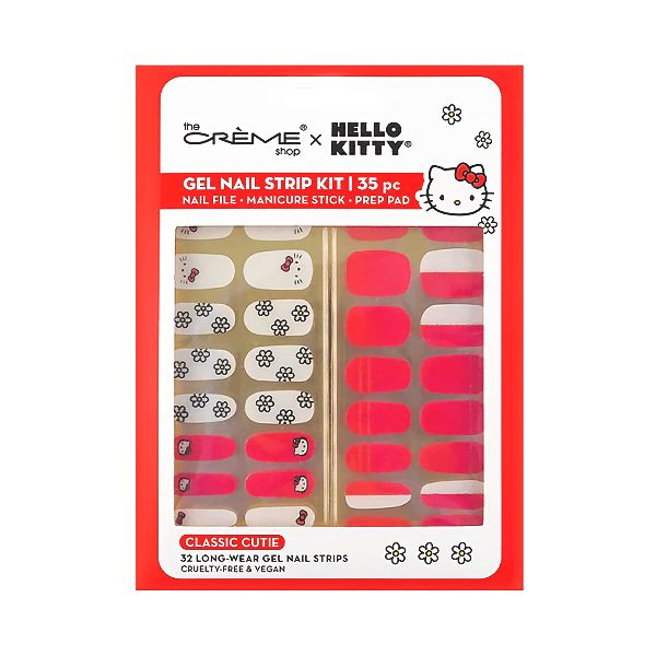 Add some Sanrio style to your nails with this adorable gel nail strips set! Give your nails a super sweet makeover with the help of Hello Kitty. This pack includes Hello Kitty and flowers, along with red & white pieces to break up the designs. Simply peel, apply, file away the excess and get ready to show off salon-worthy nails!